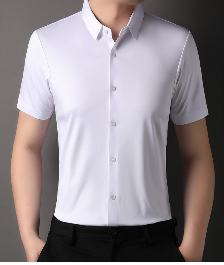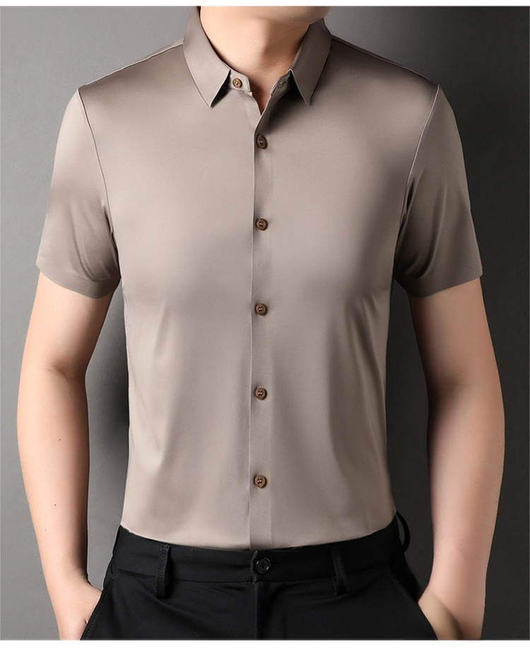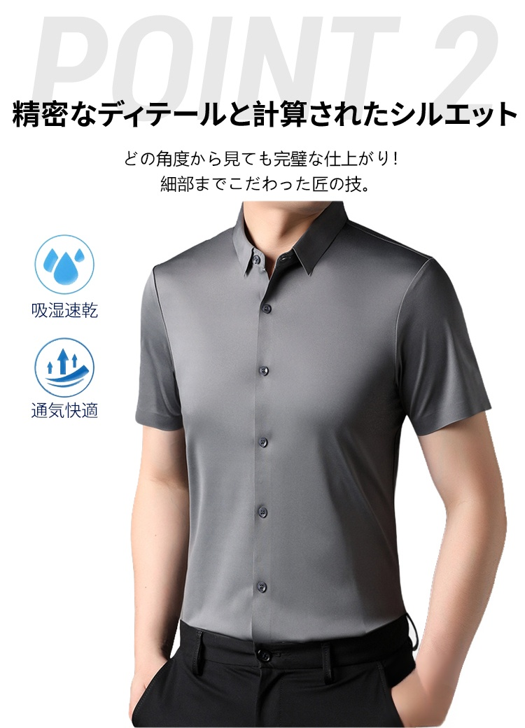 アイスシルク シワになりにくい半袖シャツ メンズ、 ビジカジ系ドレープ感冷感シャツ、 夏用 薄手 中年男性向け