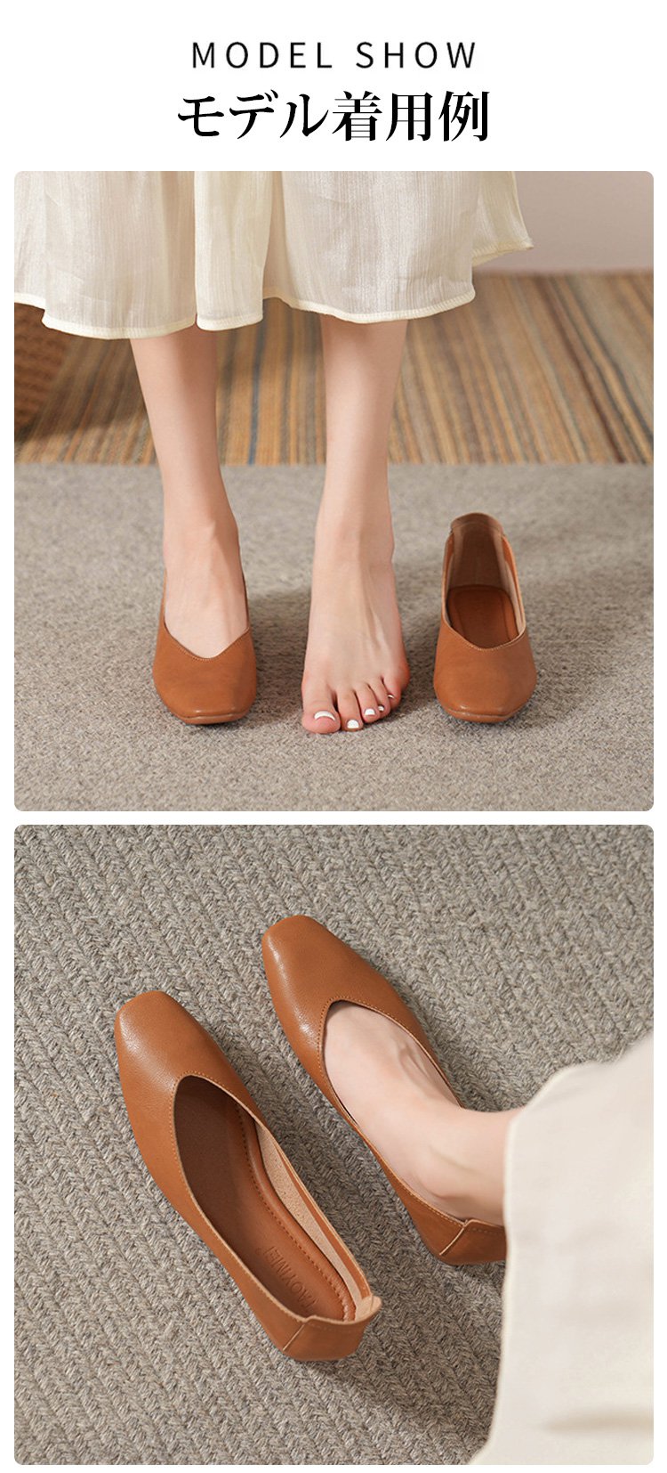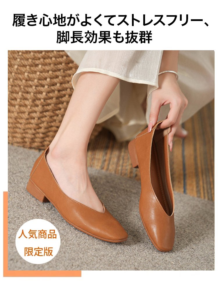 レディーススクェアトゥ羊革パンプス